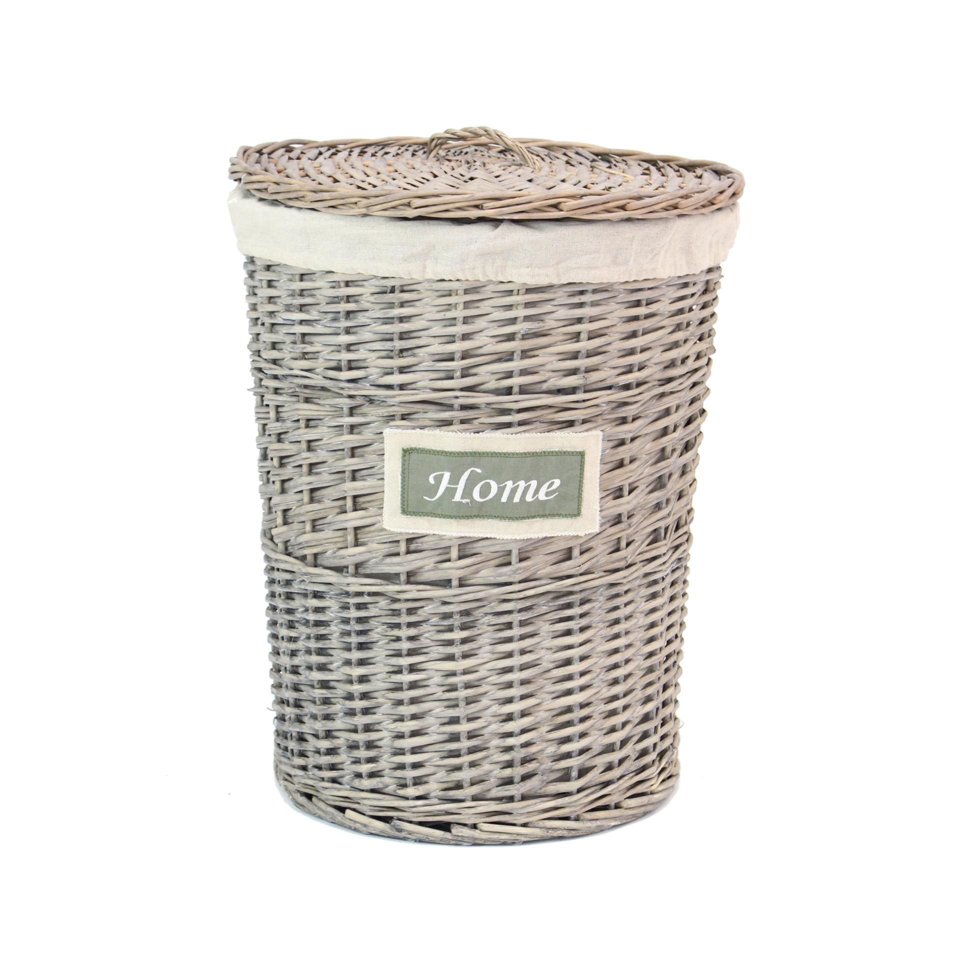 Koš na prádlo v moderním venkovském stylu, kontrastní písmo,praktické ploché víko s úchytem, ??šedo-bíleně štípaná vrba, látková vložka, O 45 x 57 cm