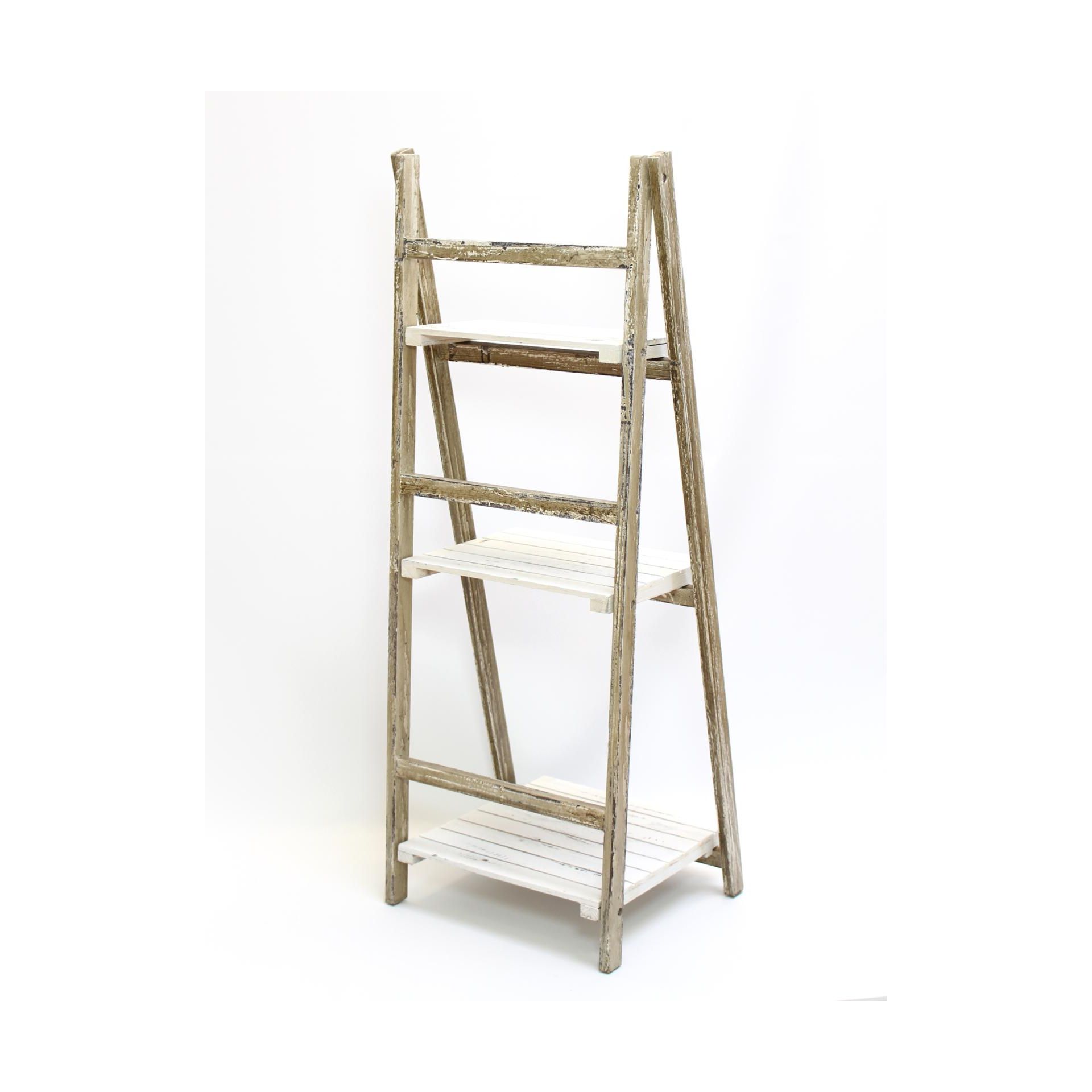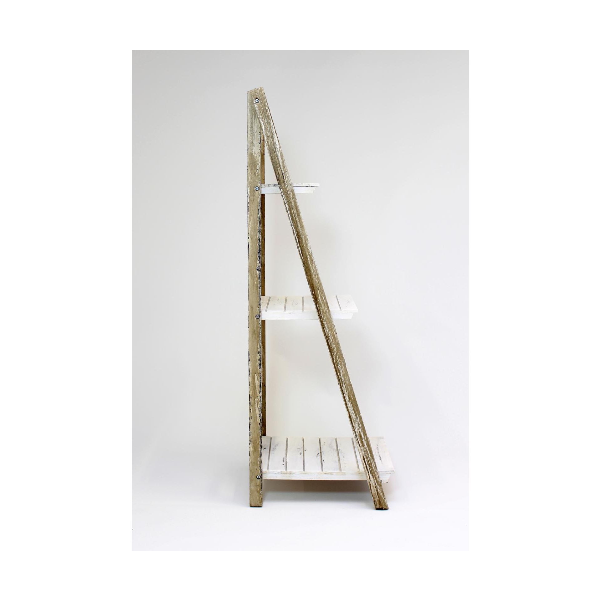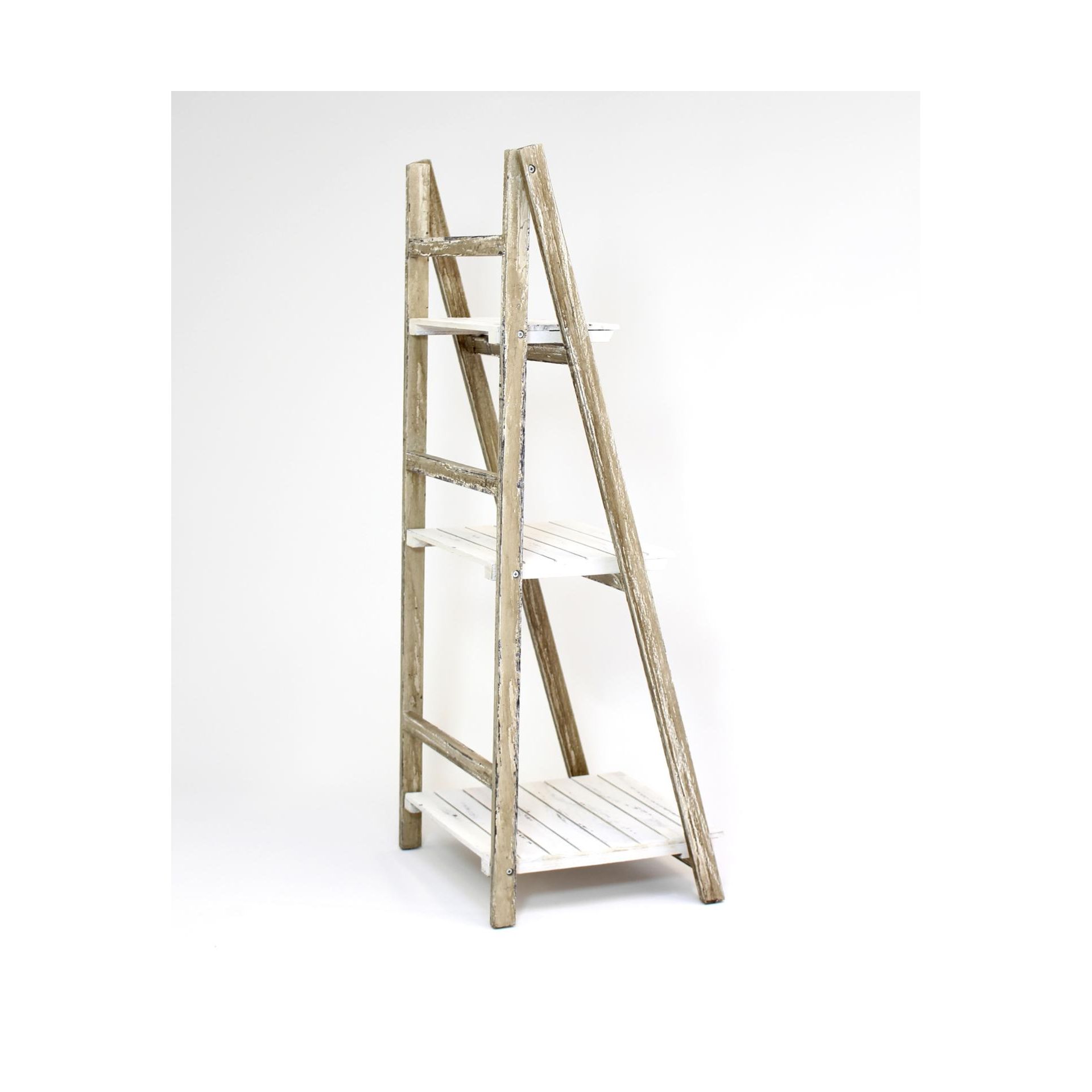 Skládací police v moderním shabby chic stylu, 3 praktické úložné police, dekorativní dřevo, mořené bílou a hnědou barvou,42 x 38 x 109 cm
