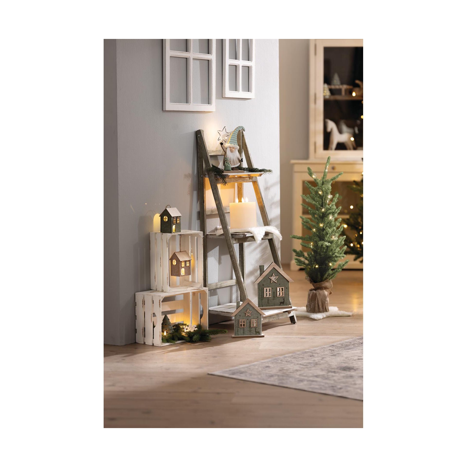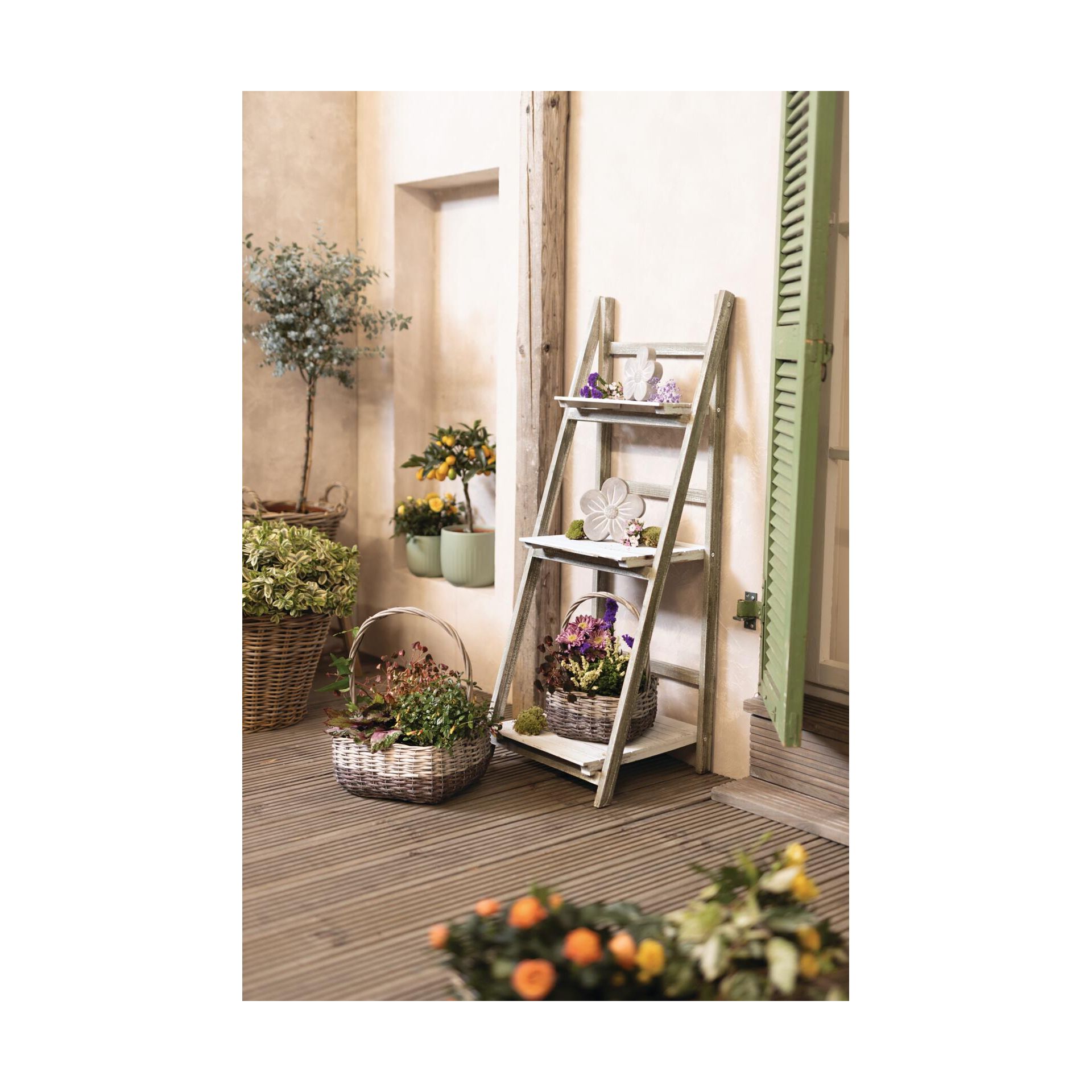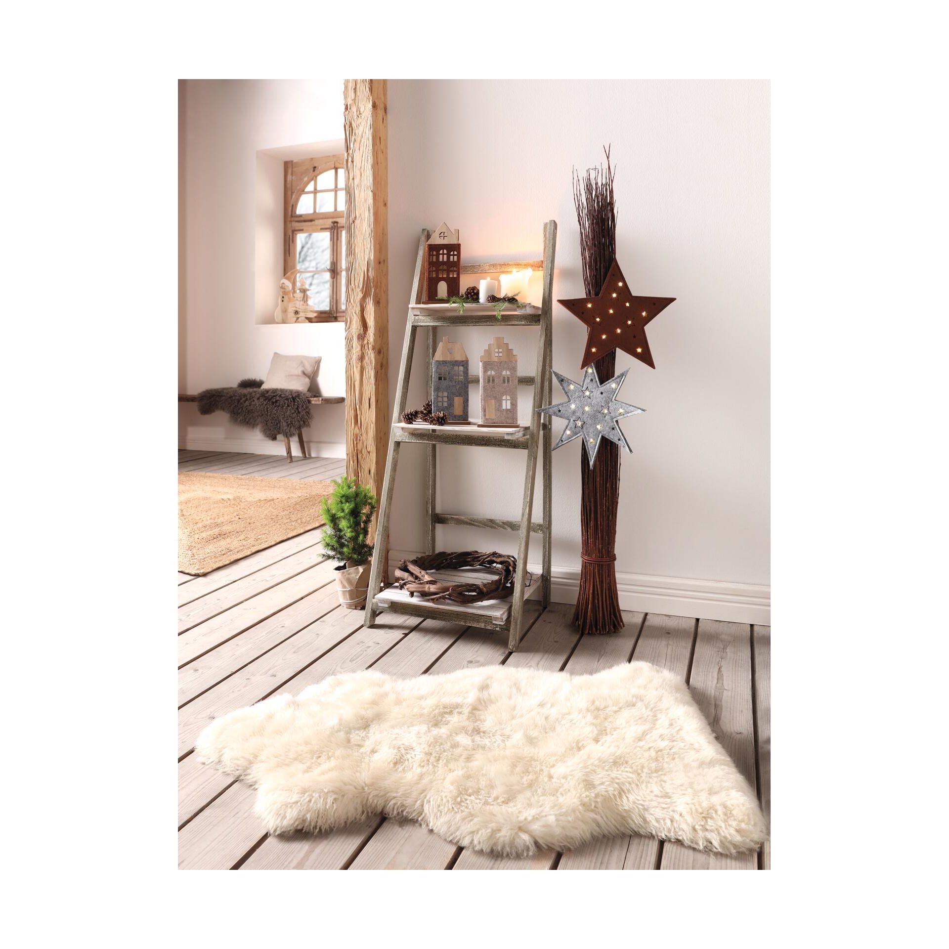 Skládací police v moderním shabby chic stylu, 3 praktické úložné police, dekorativní dřevo, mořené bílou a hnědou barvou,42 x 38 x 109 cm