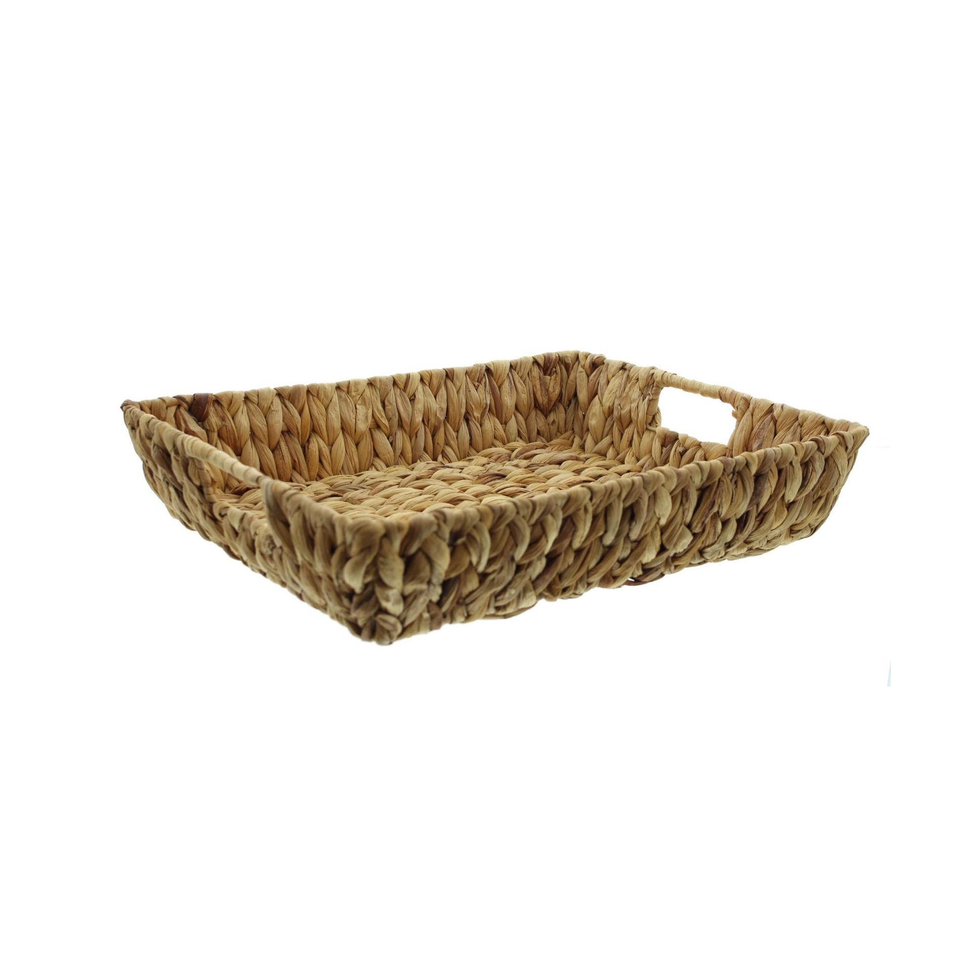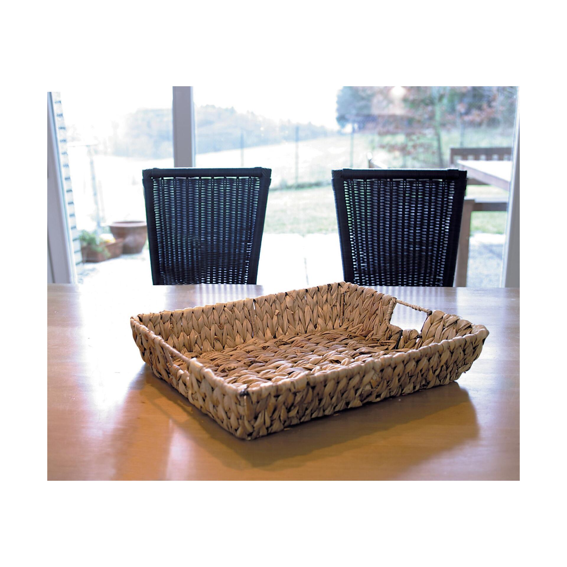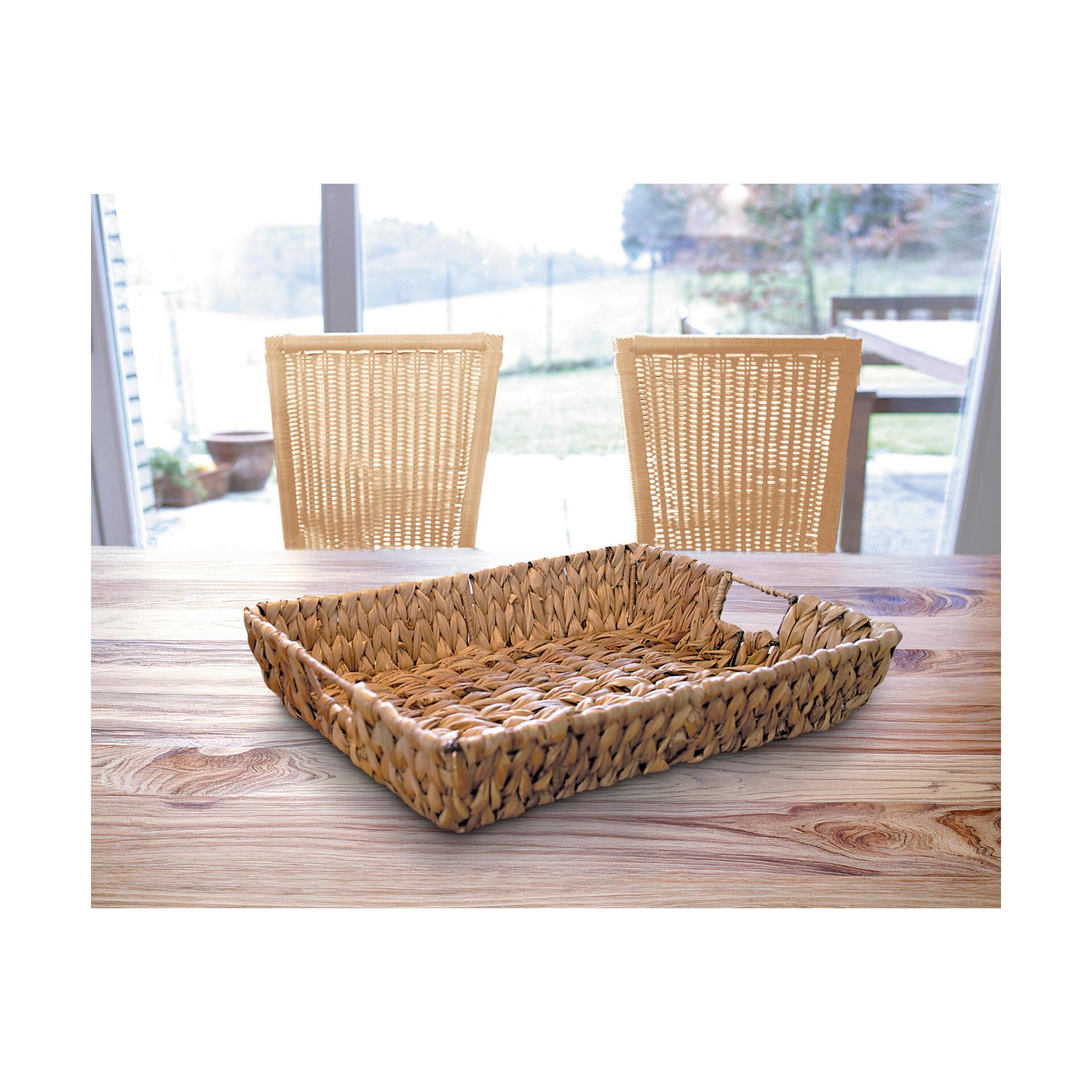 Podnos z přírodního proutí s pevnou strukturou výpletu, šedohnědý odstín, integrované úchyty pro bezpečný a pohodlný úchop, 45 x 31 x 8 cm