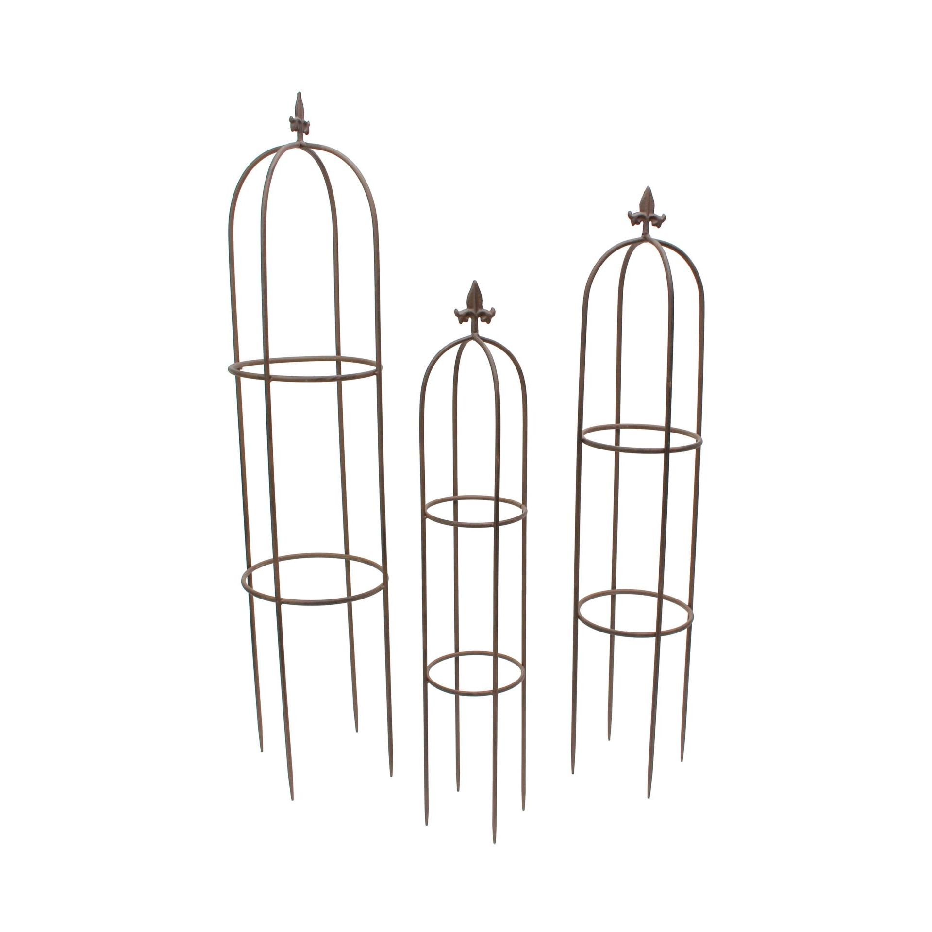 Sada 3 kusů opor pro popínavé rostliny, dekorativní a praktické doplňky na zahradu nebo do květináčů, zakončena ozdobným motivem kosatce, O 17 x 86…