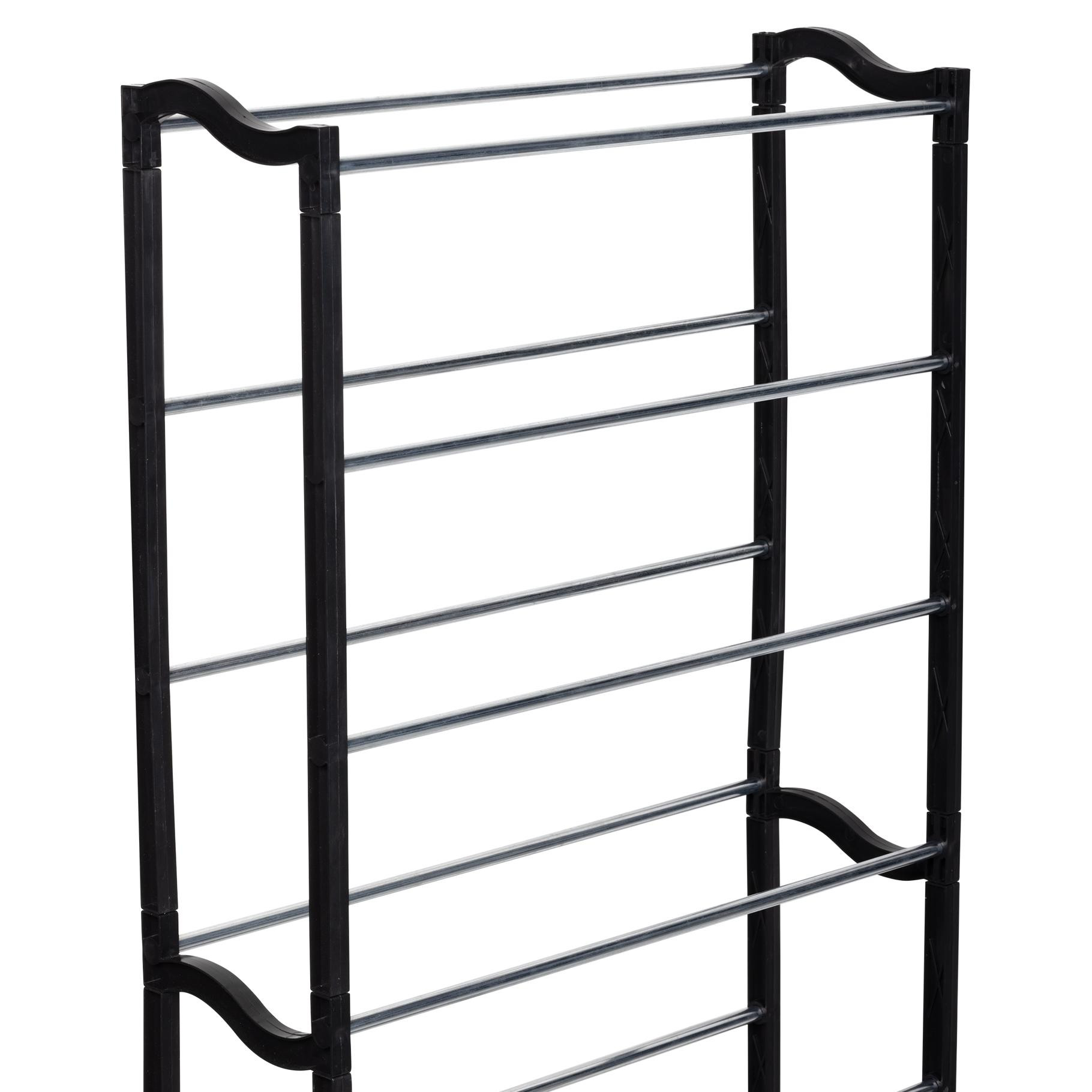Praktický kovový botník černý pojme až 20 párů obuvi a je ideálním řešením pro organizaci prostoru v domácnosti, kanceláři nebo předsíni.