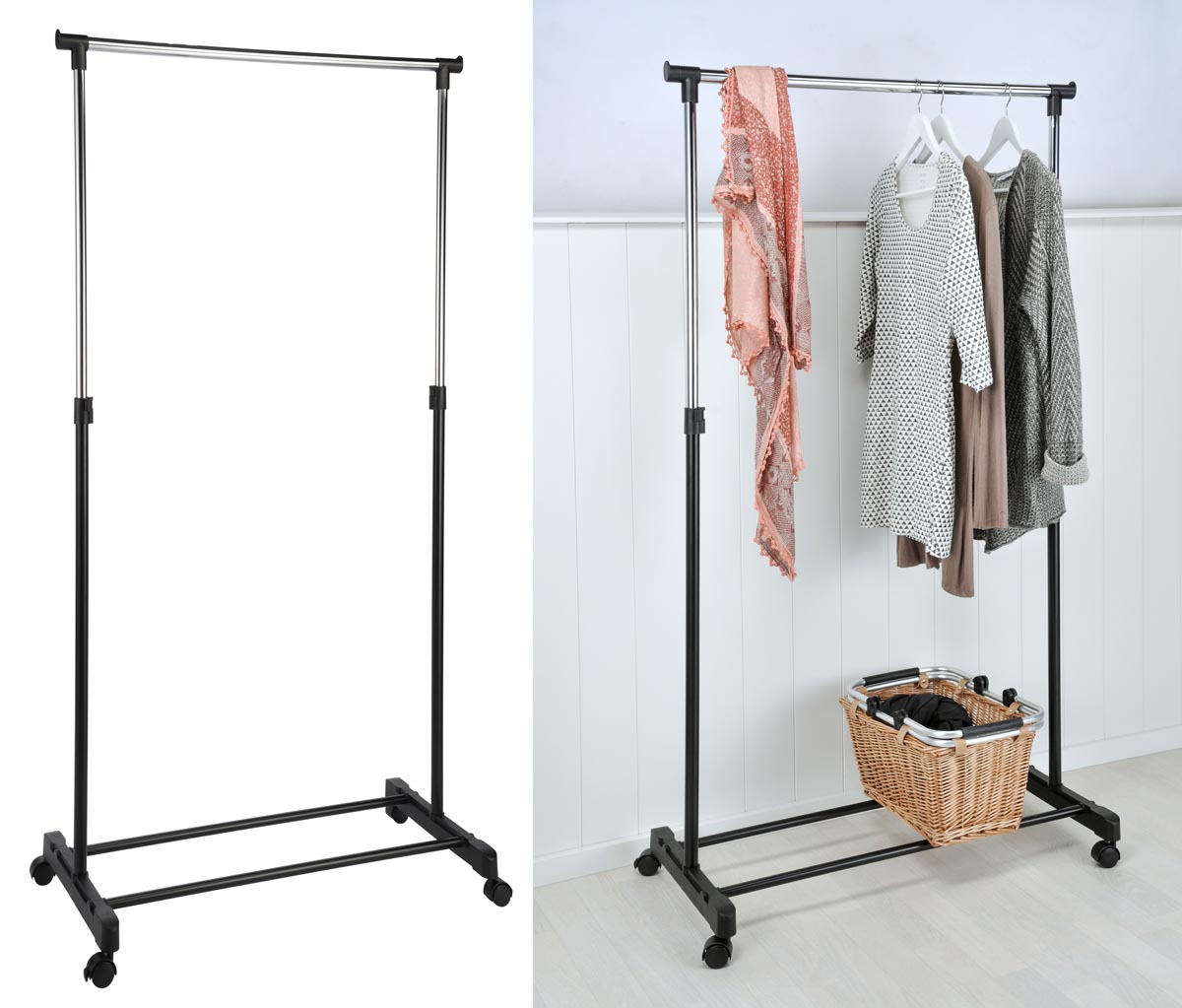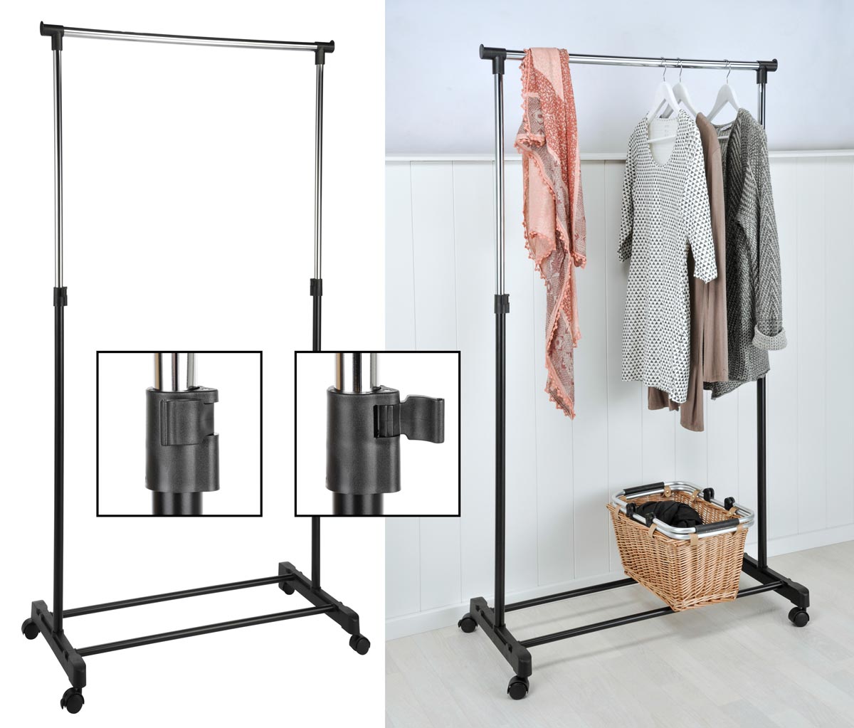 Pojízdný stojan na oblečení, 90 - 160 cm