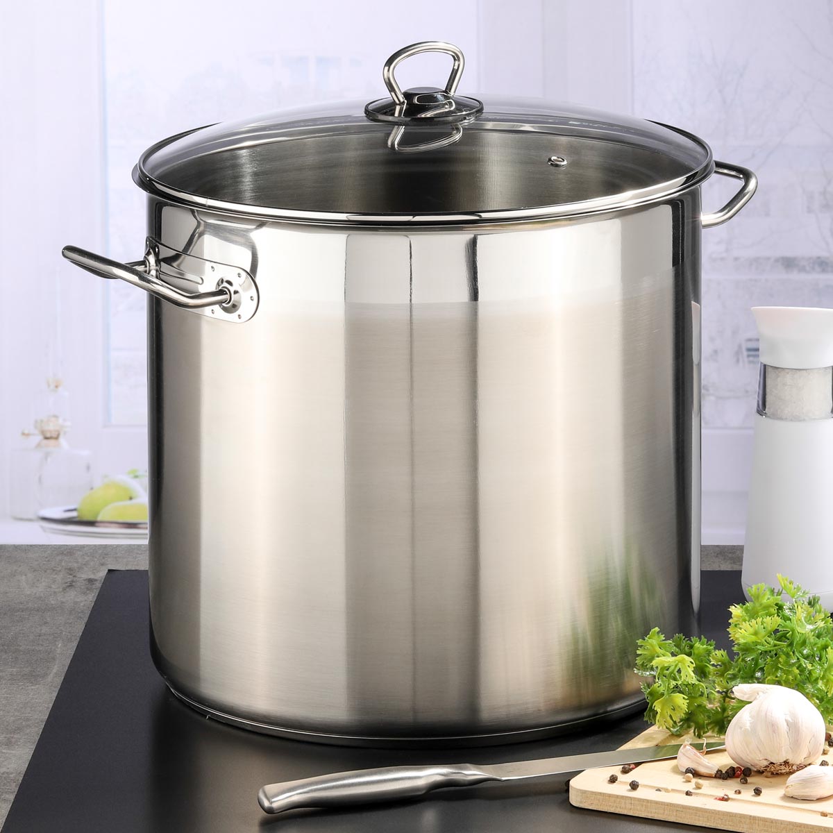 Tento nerezový hrnec o objemu až 15 litrů je skvělou volbou pro vaření většího množství pokrmů.