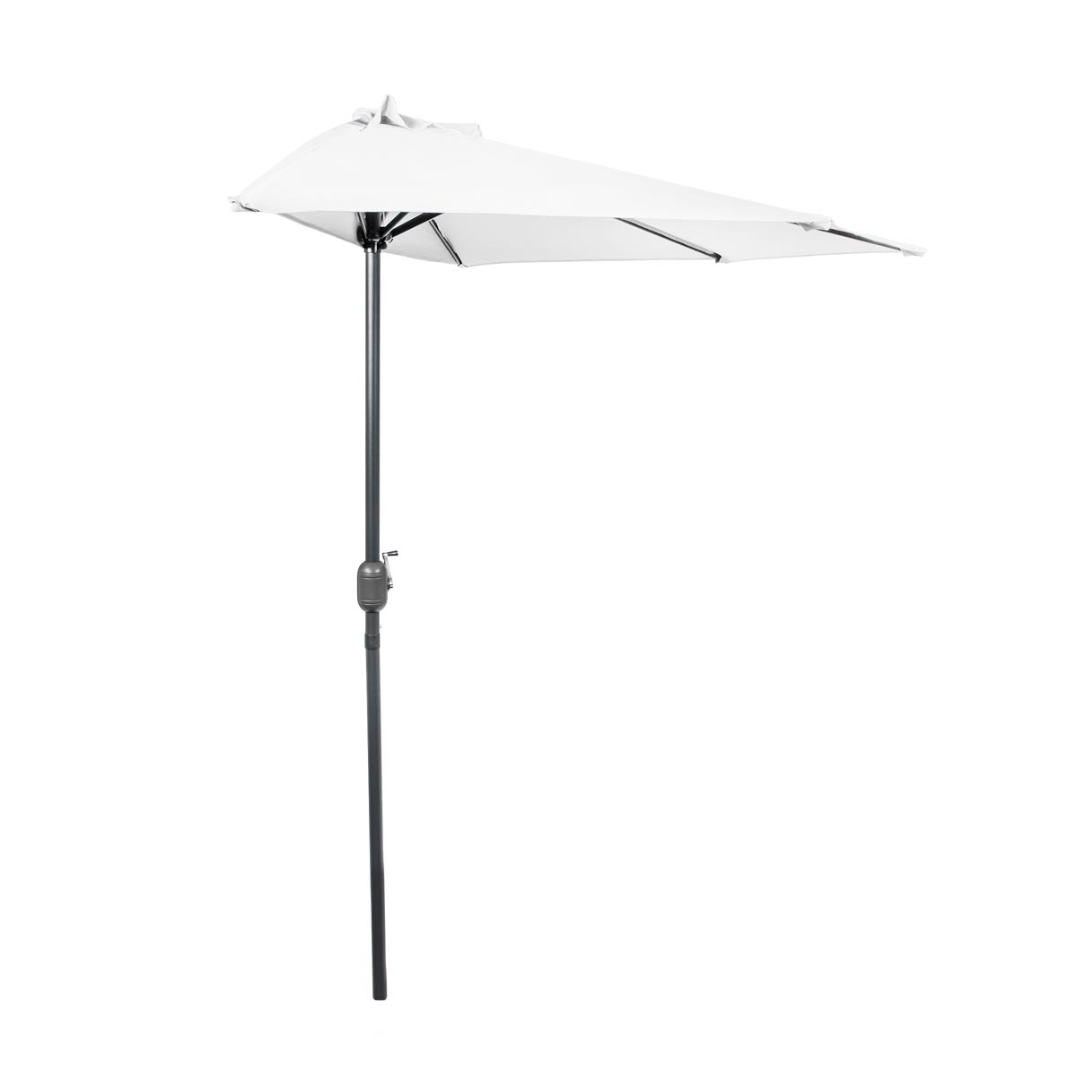 Půlkruhový slunečník ke stěně v přírodní barvě je ideální pro balkony, menší terasy nebo zahrady u domu. Pětiramenná konstrukce a UV ochrana 50+…